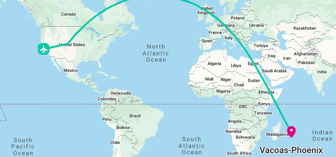 According to City Extremes, Vacoas-Pheonix in Mauritius is one of the farthest destinations from San Francisco (the city thatâs closest to my home).